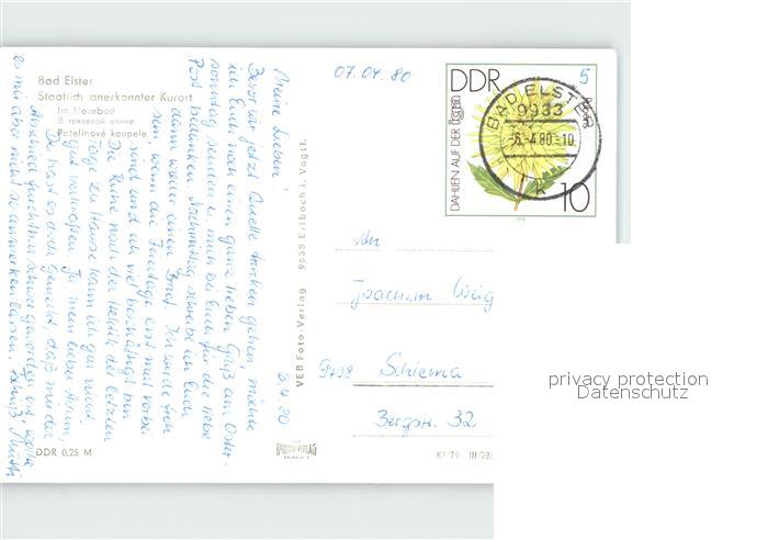 72384219 alte Postkarte Bad Elster Im Moorbad postalisch gelaufen Erhaltung siehe scans KatCode: 11110014178050