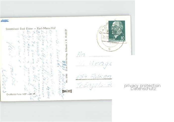72359679 alte Postkarte Bad Elster Karl Marx Hof postalisch gelaufen Erhaltung siehe scans KatCode: 11110014178050