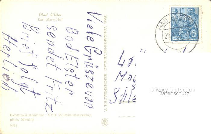 72078061 alte Postkarte Bad Elster Karl Marx Hof postalisch gelaufen Erhaltung siehe scans KatCode: 11110014178050