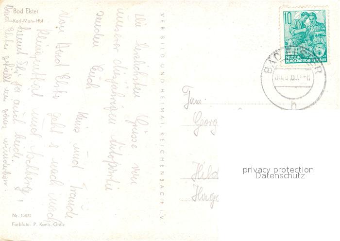 73117940 alte Postkarte Bad Elster Karl Marx Hof postalisch gelaufen Erhaltung siehe scans [KathaD81] KatCode: 11110014178050