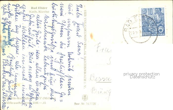 72030886 alte Postkarte Bad Elster Katholische Kirche postalisch gelaufen KatCode: 11110014178050