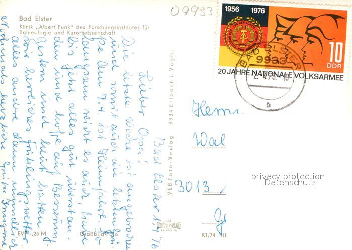 72938525 alte Postkarte Bad Elster Klinik Albert Funk postalisch gelaufen Erhaltung siehe scans [NatalD47] KatCode: 11110014178050