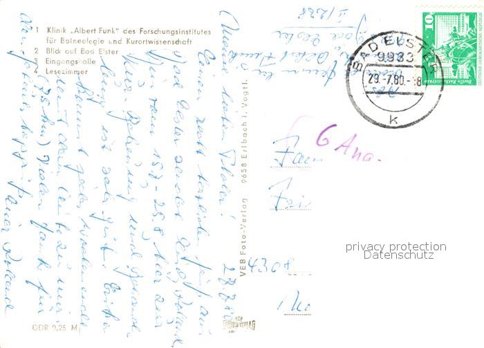 73033644 alte Postkarte Bad Elster Klinik Albert Funk Eingangshalle Lesezimmer postalisch gelaufen Erhaltung siehe scans [KathaD81] KatCode: 11110014178050