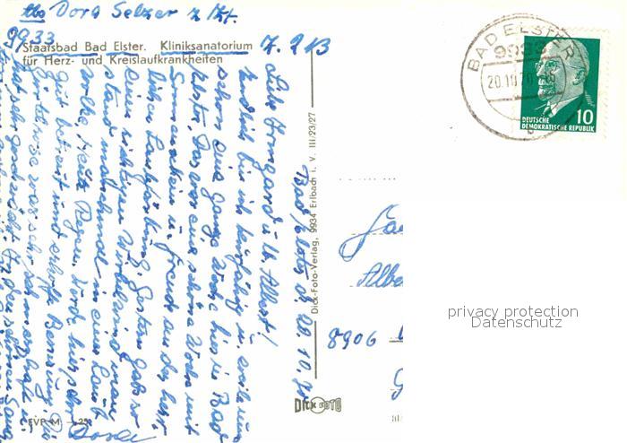 72925066 alte Postkarte Bad Elster Kliniksanatorium postalisch gelaufen Erhaltung siehe scans [WerneD78] KatCode: 11110014178050
