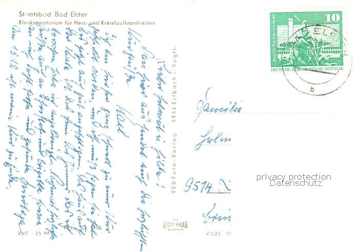 73045327 alte Postkarte Bad Elster Kliniksanatorium fuer Herz und Kreislaufkrankheiten postalisch gelaufen Erhaltung siehe scans [WerneD78] KatCode: 11110014178050