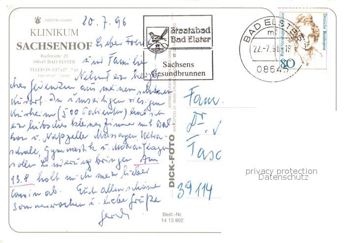 73738989 alte Postkarte Bad Elster Klinikum Sachsenhof postalisch gelaufen Erhaltung siehe scans [WerneD78] KatCode: 11110014178050