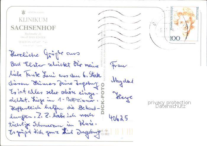 72303555 alte Postkarte Bad Elster Klinikum Sachsenhof postalisch gelaufen Erhaltung siehe scans KatCode: 11110014178050