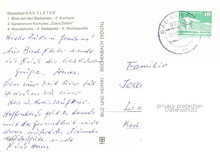 72831503 alte Postkarte Bad Elster Kurhaus Badeplatz Sanatorium Clara Zetkin Wandelhalle postalisch gelaufen Erhaltung siehe scans [LiesaD40] KatCode: 11110014178050