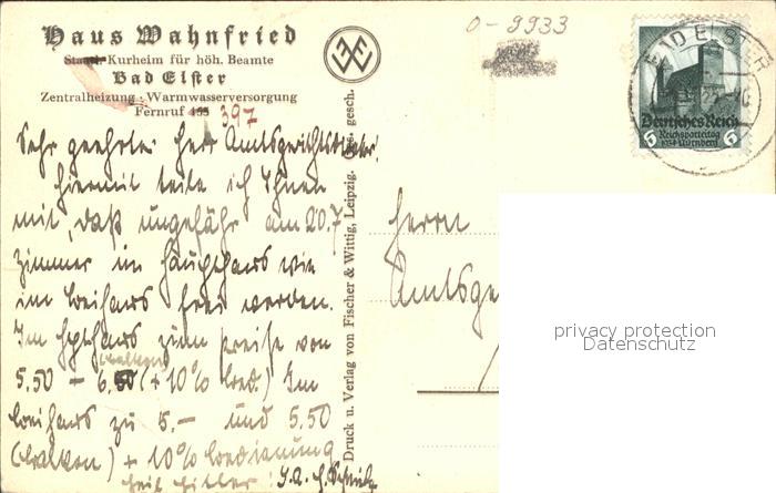 71837915 alte Postkarte Bad Elster Kurheim Wahnfried postalisch gelaufen KatCode: 11110014178050