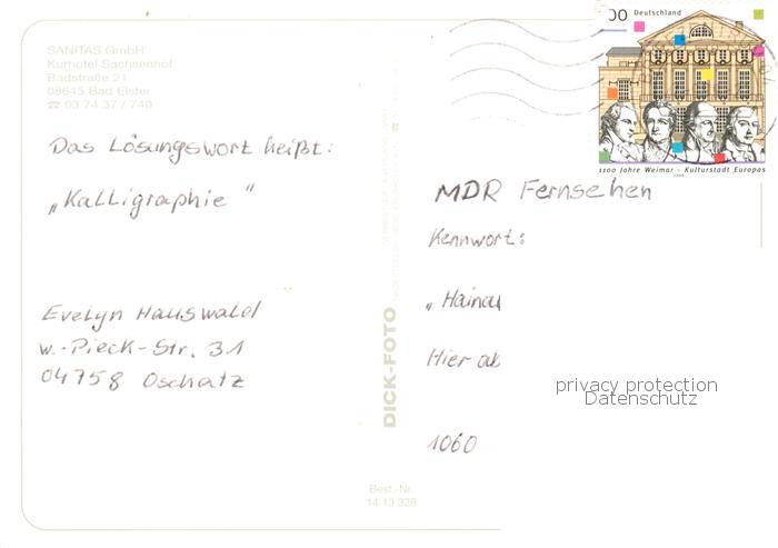 73858601 alte Postkarte Bad Elster Kurhotel Sachsenhof Restaurant Fremdenzimmer postalisch gelaufen Erhaltung siehe scans [FriedD77] KatCode: 11110014178050