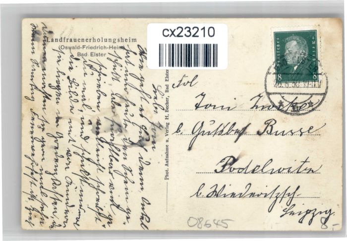 30751942 alte Postkarte Bad Elster Landfrauen Erholungsheim postalisch gelaufen KatCode: 11110014178050