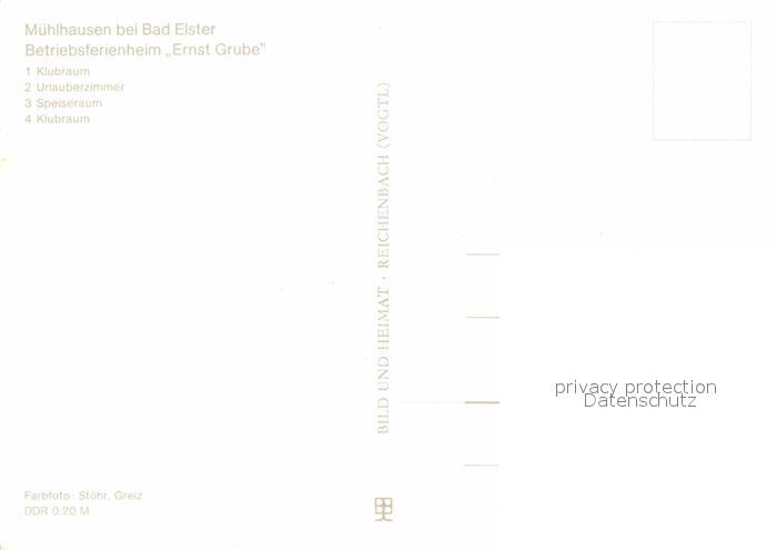72782571 Bad Elster Muehlhausen Betriebsferienheim Ernst Grube postalisch nicht gelaufen Erhaltung siehe scans [LiesaD40] KatCode: 11110014178050