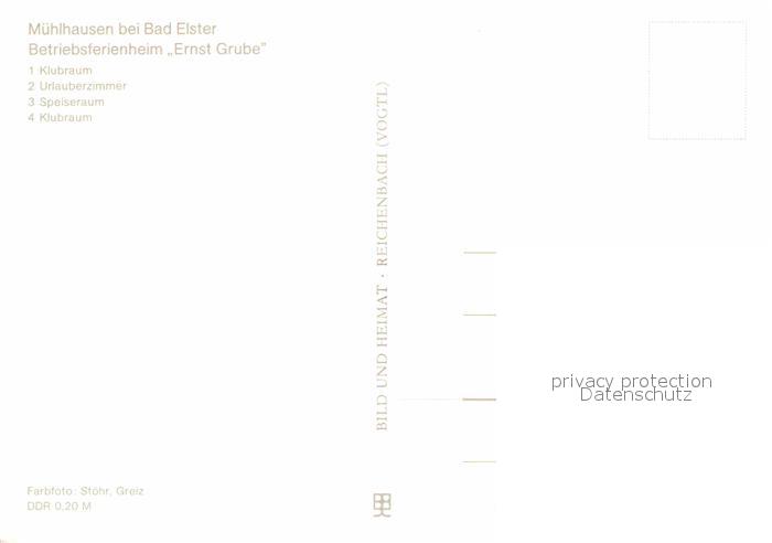 72784658 Bad Elster Muehlhausen Betriebsferienheim Ernst Grube postalisch nicht gelaufen Erhaltung siehe scans [LiesaD40] KatCode: 11110014178050