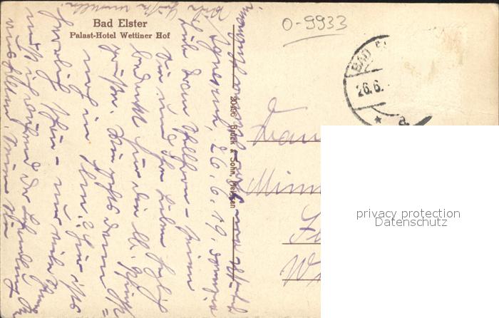 42245712 alte Postkarte Bad Elster Palast Hotel Wettiner Hof postalisch gelaufen Erhaltung siehe scans KatCode: 11110014178050