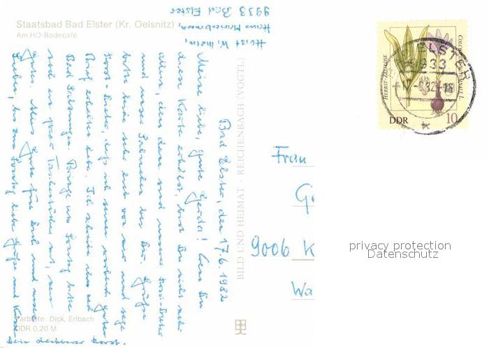 72650889 alte Postkarte Bad Elster Promenade am HO Badecafe postalisch gelaufen Erhaltung siehe scans [FriedD77] KatCode: 11110014178050