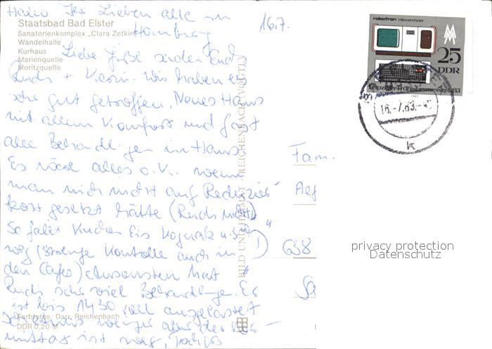 72611709 alte Postkarte Bad Elster Sanatorienkomplex Clara Zetkin Wandelhalle KurhausMarienquelle Moritzquelle postalisch gelaufen Erhaltung siehe scans [AndreD76] KatCode: 11110014178050