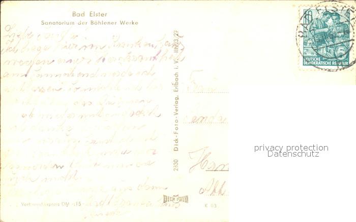 72392530 alte Postkarte Bad Elster Sanatorium Boehlener Werke postalisch gelaufen Erhaltung siehe scans KatCode: 11110014178050