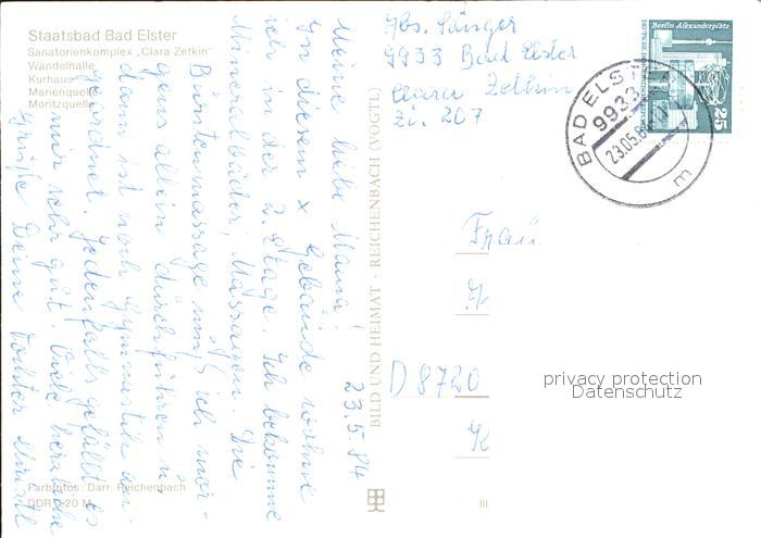 72258036 alte Postkarte Bad Elster Sanatorium Clara Zetkin Wandelhalle Kurhaus Marienquelle Moritzquelle postalisch gelaufen Erhaltung siehe scans KatCode: 11110014178050