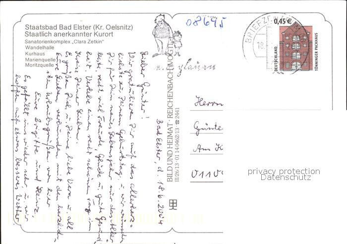 72496543 alte Postkarte Bad Elster Sanatorium Clara Zetkin Wandelhalle Kurhaus Marienquelle Moritzquelle postalisch gelaufen Erhaltung siehe scans KatCode: 11110014178050