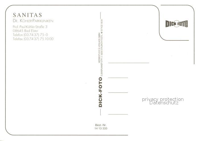 73644224 Bad Elster Sanitas Dr. Koehler Parkkliniken postalisch nicht gelaufen Erhaltung siehe scans [FriedD77] KatCode: 11110014178050