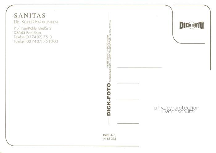 73661020 Bad Elster Sanitas Dr. Koehler Parkkliniken postalisch nicht gelaufen Erhaltung siehe scans [FriedD77] KatCode: 11110014178050