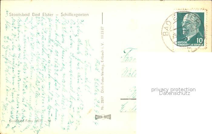 72388046 alte Postkarte Bad Elster Schillergarten postalisch gelaufen Erhaltung siehe scans KatCode: 11110014178050