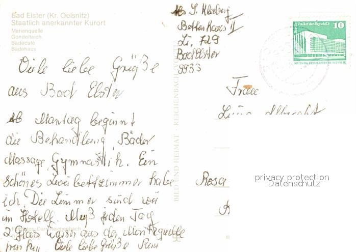 72617307 alte Postkarte Bad Elster Staatsbad Marienquelle Gondelteich Badecafe Badehaus postalisch gelaufen Erhaltung siehe scans [WerneD78] KatCode: 11110014178050
