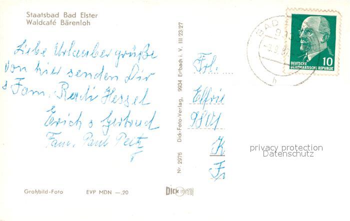 72982673 alte Postkarte Bad Elster Waldcafe Baerenloh postalisch gelaufen Erhaltung siehe scans [FriedD77] KatCode: 11110014178050