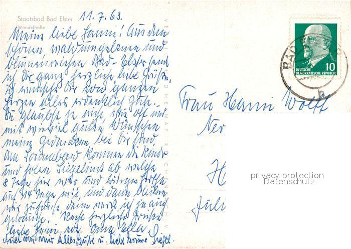 73040831 alte Postkarte Bad Elster Wandelhalle postalisch gelaufen Erhaltung siehe scans [FriedD77] KatCode: 11110014178050