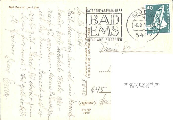 71894363 alte Postkarte Bad Ems postalisch gelaufen Erhaltung siehe scans KatCode: 11110007141006