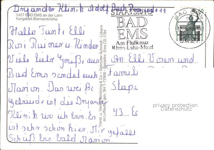 72314550 alte Postkarte Bad Ems Bismarckhoehe Fliegeraufnahme postalisch gelaufen Erhaltung siehe scans KatCode: 11110007141006