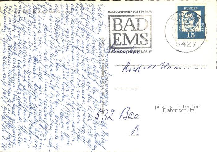 72201045 alte Postkarte Bad Ems Blick auf das Kurviertel postalisch gelaufen Erhaltung siehe scans KatCode: 11110007141006