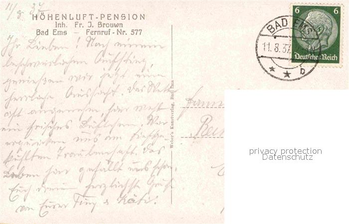 72795395 alte Postkarte Bad Ems Blick vom Cafe Restaurant Konkordiaturm postalisch gelaufen Erhaltung siehe scans [LiesaD40] KatCode: 11110007141006