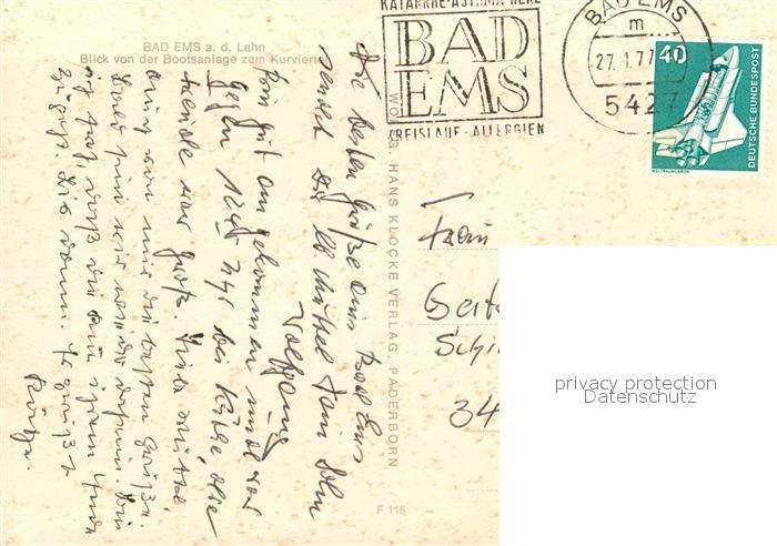 73155411 alte Postkarte Bad Ems Bootsanlage mit Kurviertel postalisch gelaufen Erhaltung siehe scans [WerneD78] KatCode: 11110007141006