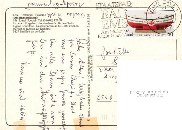 73718165 alte Postkarte Bad Ems Cafe Restaurant Am Bismarckturm Gaststube Bar postalisch gelaufen Erhaltung siehe scans [WerneD78] KatCode: 11110007141006