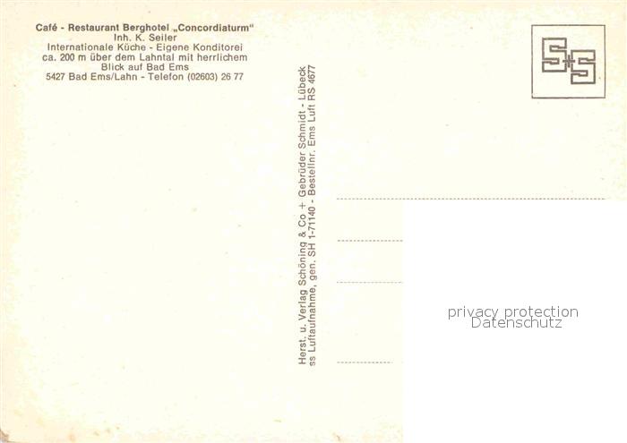 72707641 Bad Ems Cafe Restaurant Berghotel Concordiaturm Fliegeraufnahme postalisch nicht gelaufen Erhaltung siehe scans [FriedD77] KatCode: 11110007141006