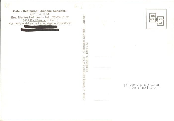 71928066 Bad Ems Cafe Restaurant Schoene Aussicht postalisch nicht gelaufen Erhaltung siehe scans KatCode: 11110007141006