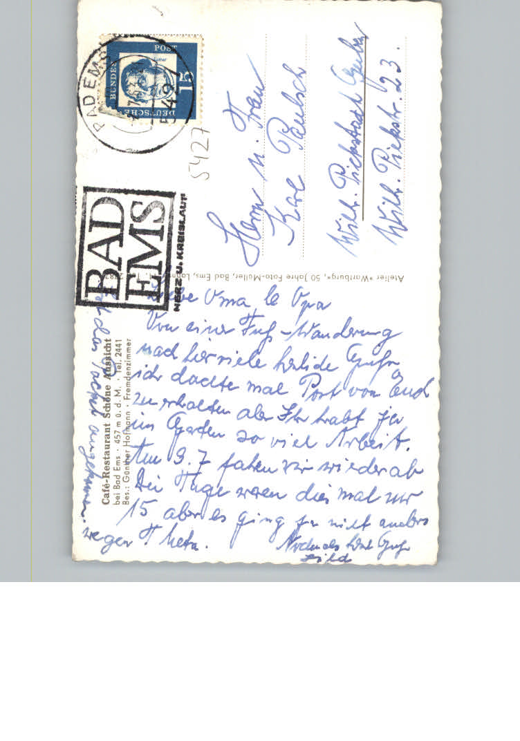31138561 Bad Ems Cafe und Restaurant Schoene Aussicht postalisch nicht gelaufen KatCode: