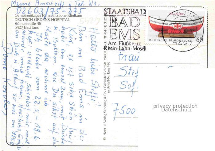 74040948 alte Postkarte BAD EMS Deutsch Ordens Hospital Gastraeume Rezeption postalisch gelaufen Erhaltung siehe scans [WerneD78] KatCode: 11110007141006