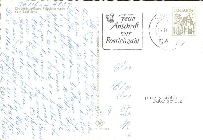 72205416 alte Postkarte Bad Ems Diakonissenhaus Friedenswarte postalisch gelaufen Erhaltung siehe scans KatCode: 11110007141006