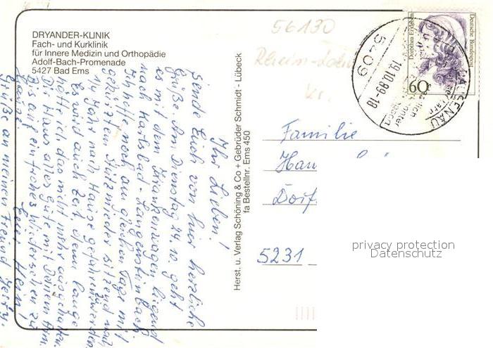 73324152 alte Postkarte Bad Ems Dryander Klinik Speiseraum Hallenbad Foyer postalisch gelaufen Erhaltung siehe scans [FriedD77] KatCode: 11110007141006