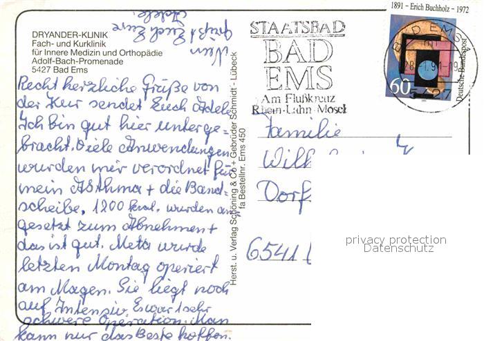 72890851 alte Postkarte Bad Ems Dryander Klinik postalisch gelaufen Erhaltung siehe scans [AndreD76] KatCode: 11110007141006