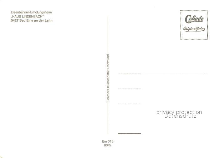 73648142 Bad Ems Eisenbahner Erholungsheim Haus Lindenbach postalisch nicht gelaufen Erhaltung siehe scans [FriedD77] KatCode: 11110007141006