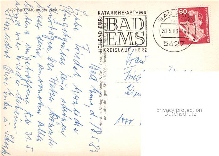 72960142 alte Postkarte Bad Ems Fliegeraufnahme postalisch gelaufen Erhaltung siehe scans [PaolaD17] KatCode: 11110007141006
