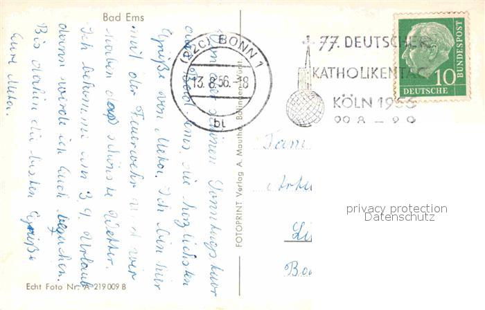 72842318 alte Postkarte Bad Ems Fliegeraufnahme postalisch gelaufen Erhaltung siehe scans [LiesaD40] KatCode: 11110007141006