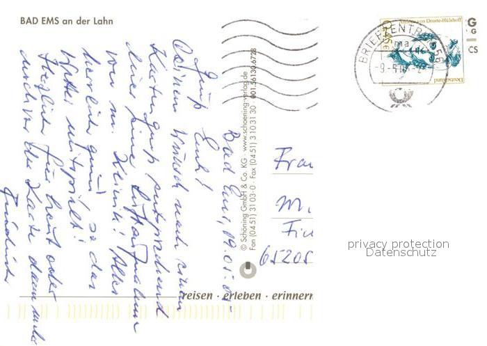73237640 alte Postkarte Bad Ems Fliegeraufnahme postalisch gelaufen Erhaltung siehe scans [LiesaD40] KatCode: 11110007141006