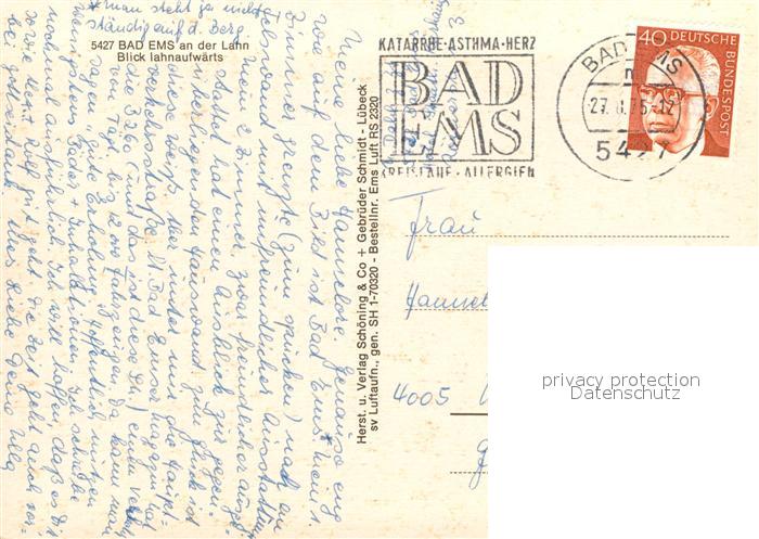 72929704 alte Postkarte Bad Ems Fliegeraufnahme Lahn postalisch gelaufen Erhaltung siehe scans [KathaD81] KatCode: 11110007141006