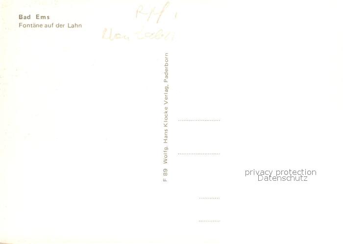 72933664 Bad Ems Fontaene auf der Lahn postalisch nicht gelaufen Erhaltung siehe scans [WerneD78] KatCode: 11110007141006