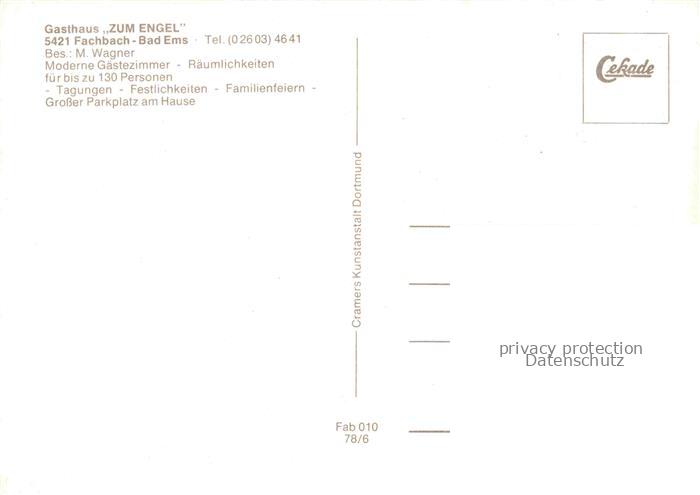 74050909 BAD EMS Gasthaus zum Engel Gastraeume postalisch nicht gelaufen Erhaltung siehe scans [WerneD78] KatCode: 11110007141006