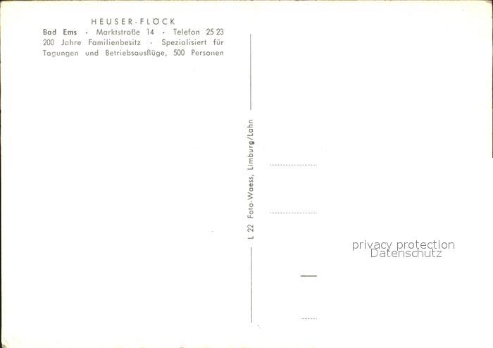 72504587 Bad Ems Heuser Floeck postalisch nicht gelaufen Erhaltung siehe scans KatCode: 11110007141006